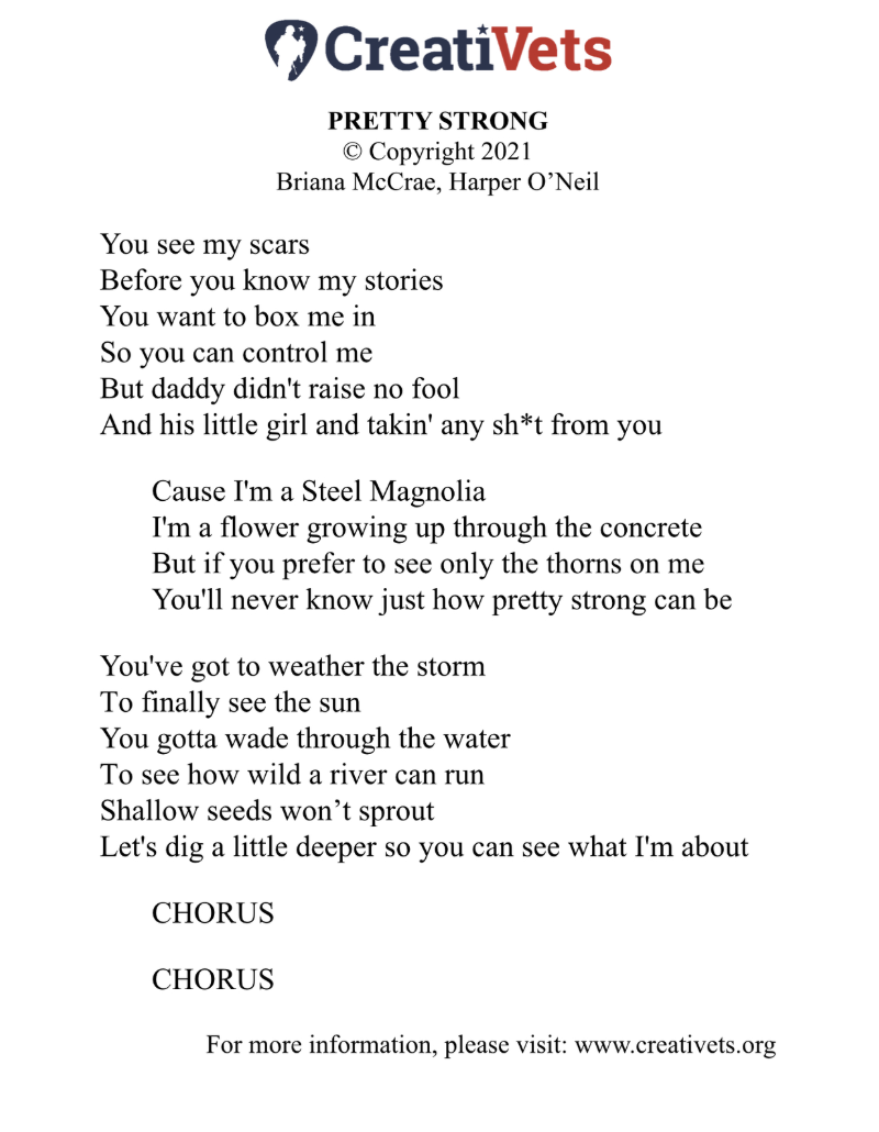 “Pretty Strong” is my main piece from my time with Creativets. Each component represents me and my life journey. On the mirrors on the back of the mannequin are all labels others put on me (Uncle Tom, Bitch, Whitewashed, Nigger, Deplorable, Hopeless, worthless, Crazy, Etc), some from people I thought who loved me, hence the bloody knives in my back. But what you say about me reflects more about you than me. On the front of the mannequin is what I want to reflect to the world (Light, Love, Wife, Dog Mom, friend, worthy, chef, positive statistic, artist, etc.). Below the mannequin are all the roles I would hide myself behind: veteran, cooking, trying to be a perfect wife, sister, daughter, employee, etc. No more facade. Just me. The mirrored canvas represents Grit & Grace and other pretty things that are actually strong (Glass, Pearls, Diamonds). The wooden woman is the strong, resilient queen I strive to be, never forgetting my inner little girl and keeping her safe and loved, making her dreams come true.